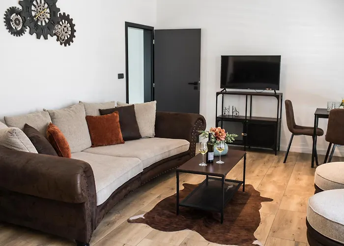 O apartamento M.F. oferece cozinha, bem como quartos com kitchenette, área de estar e TV. 1 km de Terra Technica, apartamento de 65 m^2 fornece casino, parque aquático e terraço para banhos de sol.